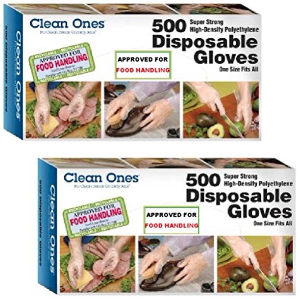 Clean Ones 1000 Count 2 Boxes Of 500 Disposable Food Safe Poly Gloves One Size Walmart Com